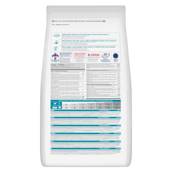 Hill's SCIENCE PLAN Hypoallergenic Somonlu küçük ve mini ırk yetişkin köpek maması, sınırlandırılmış miktarda yüksek kaliteli ve orijinal protein kaynaklarıyla formüle edilmiş ve hassasiyeti olan köpeklerin ihtiyaçlarını karşılamak amacıyla özel olarak hazırlanmış, tahıl içermeyen bir tariftir.