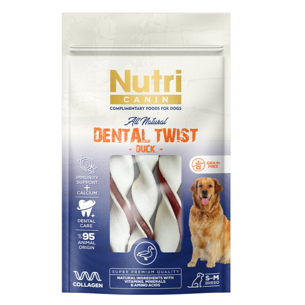 Bileşimi: Ördek %36, Sığır Derisi %59, Patates Nişastası, Tuz, Gliserin, Sorbitol, E Vitamini. Analitik bileşenler: Ham protein %58, ham yağ %6.8, ham lif %1.5, ham kül %3.5, nem %18. Besleme tavsiyesi: Ağız ve diş sağlığı için, ödül olarak günde 1-3 adet. Besleme kılavuzu: Köpeğiniz için sürekli taze su bulundurunuz. Serin ve kuru yerde saklayınız.