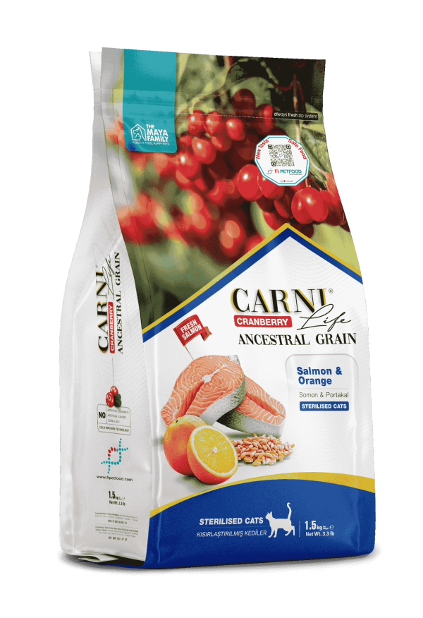 Taze somon eti (%21), somon protein unu (%18), doğal ekstrakte bezelye unu, balık proteini unu, kurutulmuş tavuk eti, hidrolize tavuk eti, kurutulmuş balkabağı (%5), pancar küspesi lifi, balık yağı, ayçiçeği yağı, bezelye lifi, kuru portakal (%0,5), kuru havuç, mannan oligosakkaritler (MOS) (%0,15), taurin (%0,1), L karnitin, inülin, metiyonin